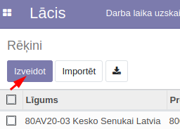 Klikšķinot uz šīs pogas, lietotājs nonāk šajā pašā rēķinu sarakstā, tikai tajā ir atlasīti tikai tie tie rēķini, kas attiecas uz projektu vai līgumu.