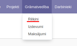 Līgums: jānorāda līgums, kura ietvaros rēķins izrakstīts. Izvēloties projektu, laukā automātiski tiks atlasīti šajā projektā ietvertie līgumi;